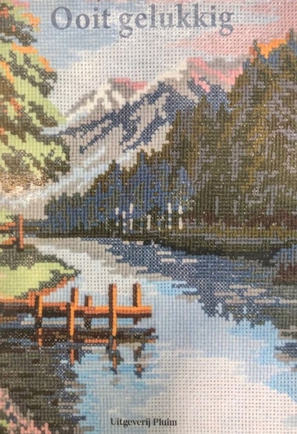 Aardig vind ik dat de ontwerpster van het omslag blijkbaar borduren associeert met gelukkig zijn.