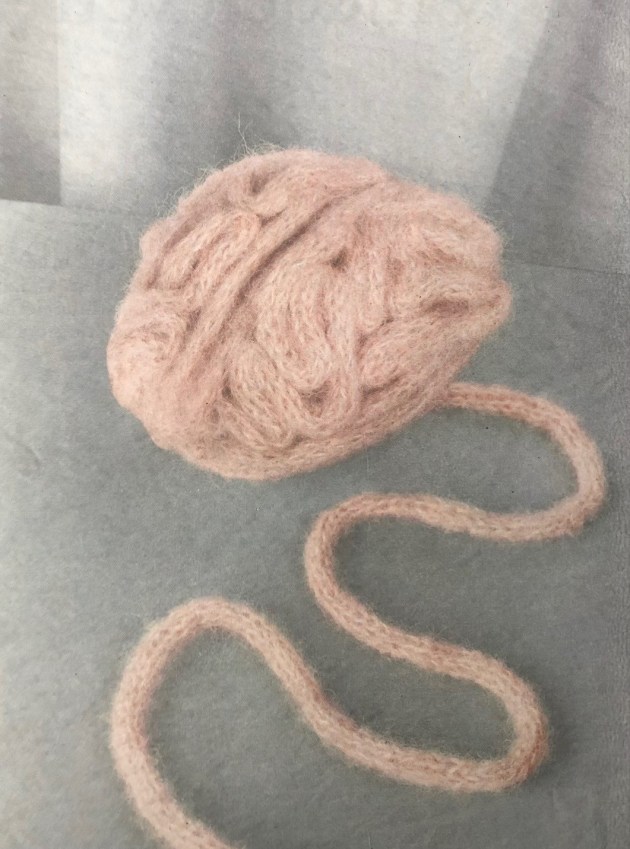 Op 13 februari 2025 ben ik aangenaam getroffen door een textiel kunstwerk. In het katern Wetenschap in De Volkskrant staat een artikel over empathie. Twee neurowetenschappers onderzochten het menselijk brein. Wanneer zijn mensen en dieren in staat om mee te voelen met de ander? Die vraag is sterk verbeeld door een kunstenaar: met roze draad is een koord gepunnikt. Dat koord is gemanipuleerd op de direct herkenbare wijze waarop ons brein in elkaar grijpt.