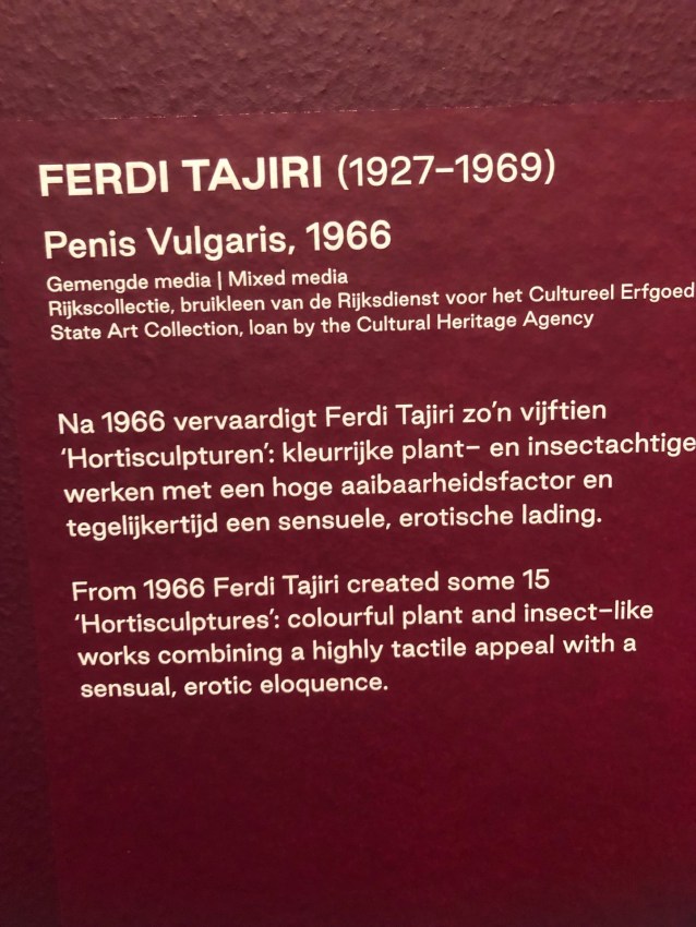‘De felgekleurde werken vol erotische verwijzingen belichamen de Flower Power-kunst van pluche. Na een reis naar Mexico in 1965 begon Ferdi sculpturen te maken van textiel in felle kleuren. De pluche sculpturen hebben de vormen van fallussen en schedes. Ze bevatten verwijzingen naar seksualiteit. De manshoge beelden zijn geen letterlijke geslachtsdelen maar eerder exotische bloemen en insecten.’ Deze laatste vijf regels komen van Kunstvensters, geschreven door Jeroen de Baay.