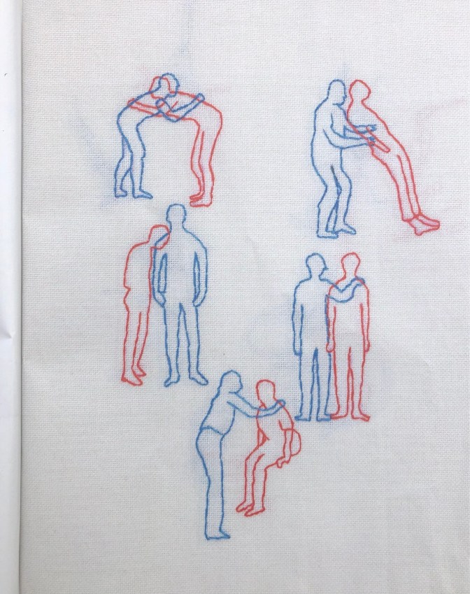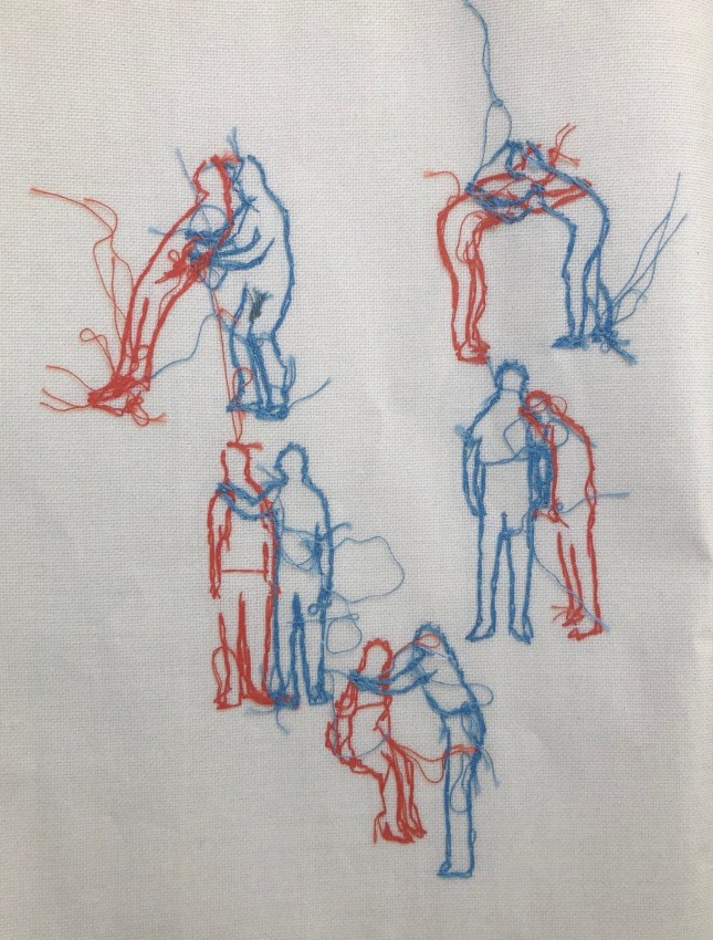 Hoe veelzeggend de achterkant van textiel kan zijn is mooi te zien in onderstaand textiel werk van Deborah Van Der Schaaf. De voorstellingen zijn geborduurd op borduurlinnen.