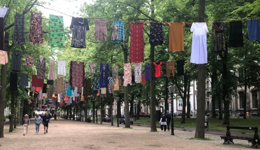 Het is nog altijd een beetje een deftige plek. Als ik aan kom lopen kan ik eerst niet plaatsen wat ik zie: zijn er waslijnen met was gespannen tussen de bomen?