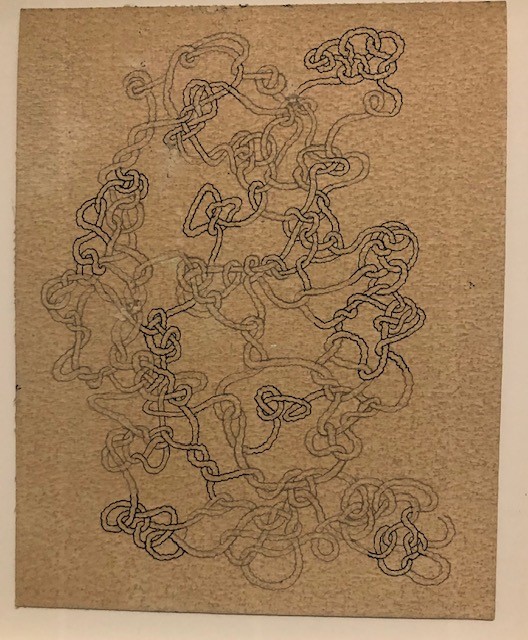 Om te zwijgen van alle vormen die een draad kan aannemen: ik kan er lussen mee maken, knopen in leggen. Van iets dat eendimensionaal is iets driedimensionaals maken…een ondoenlijke opdracht, maar als je een draad één-dimensionaal noemt….is het een eitje.