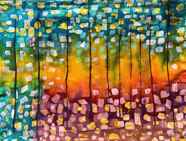 Bij textiel werk vind ik het steeds weer een vraag: hoe werk ik de batik, het lapje stof af? Hoe ga ik het presenteren? Al maak ik iets wat fantastisch mooi is: het blijft een lapje. Vanzelfsprekend wil ik ook dat het een lapje blijft; ik wil niet iets pretenderen wat er niet is. Maar alleen een lapje….ik wil er iets mee doen, waardoor de kijker het werk niet associeert met bijvoorbeeld een stofdoek, want dat is ook een lapje. Ha, ik denk dat ik een thema heb voor het blog van de komende maand, misschien wel maanden: hoe presenteer ik textiel werk?