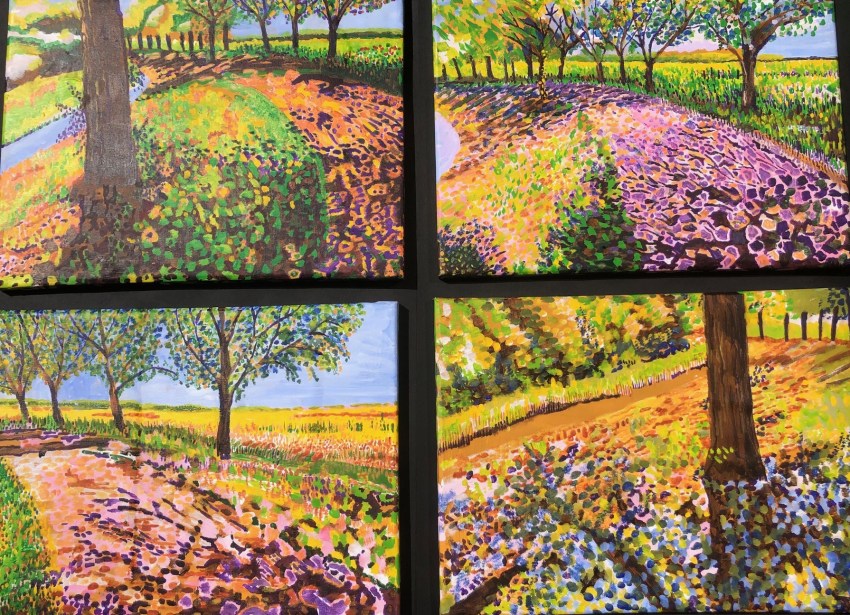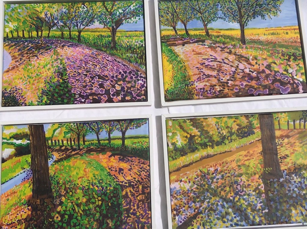 Voor de afbeelding op de batik liet ik me inspireren door een van onderstaande schilderijen. Ook deze maakte ik de afgelopen maanden (min of meer) af.